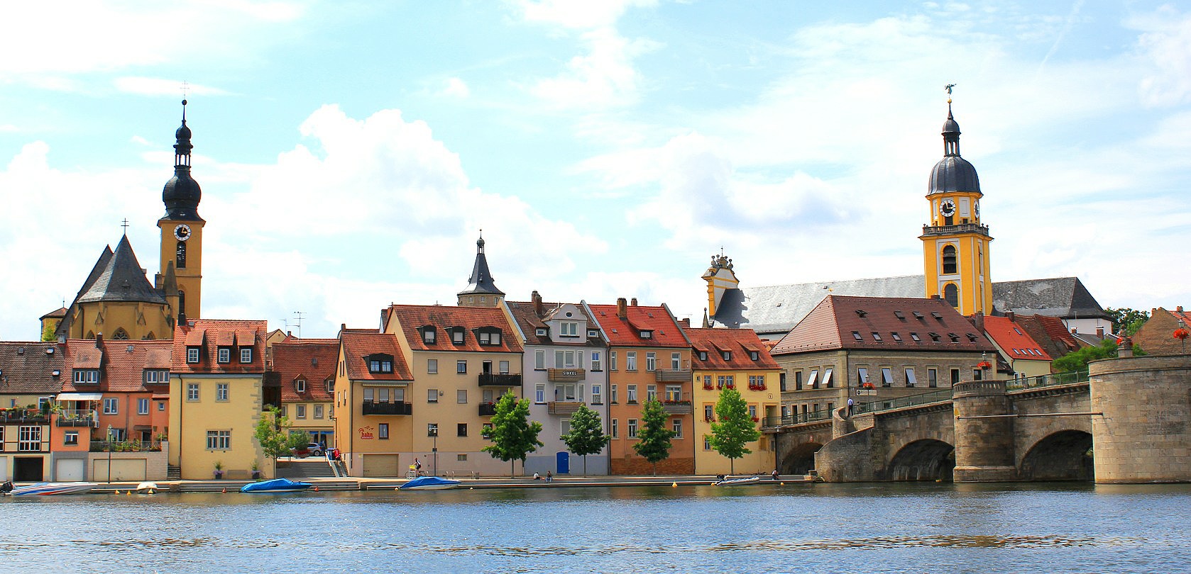Cycling a round route along the Main we visited Kitzingen, a larger and busier town with a riverfront setting. Lunching locals and office workers were taking their seats outside bustling cafes and inns.