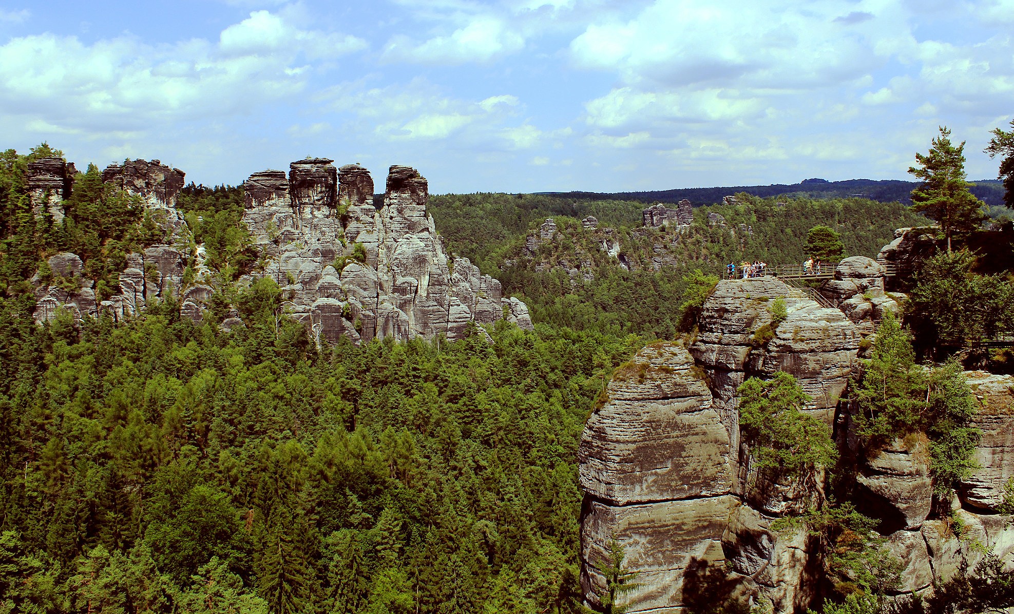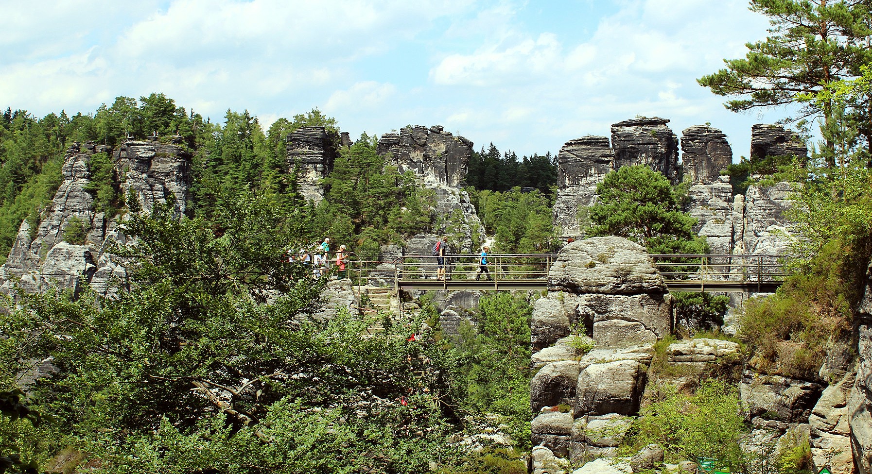 Travellers have been scaling the forested sides of the Bastei for more than 200 years and in 1824 a wooden bridge was built to link several of the rocks at its pinnacle.