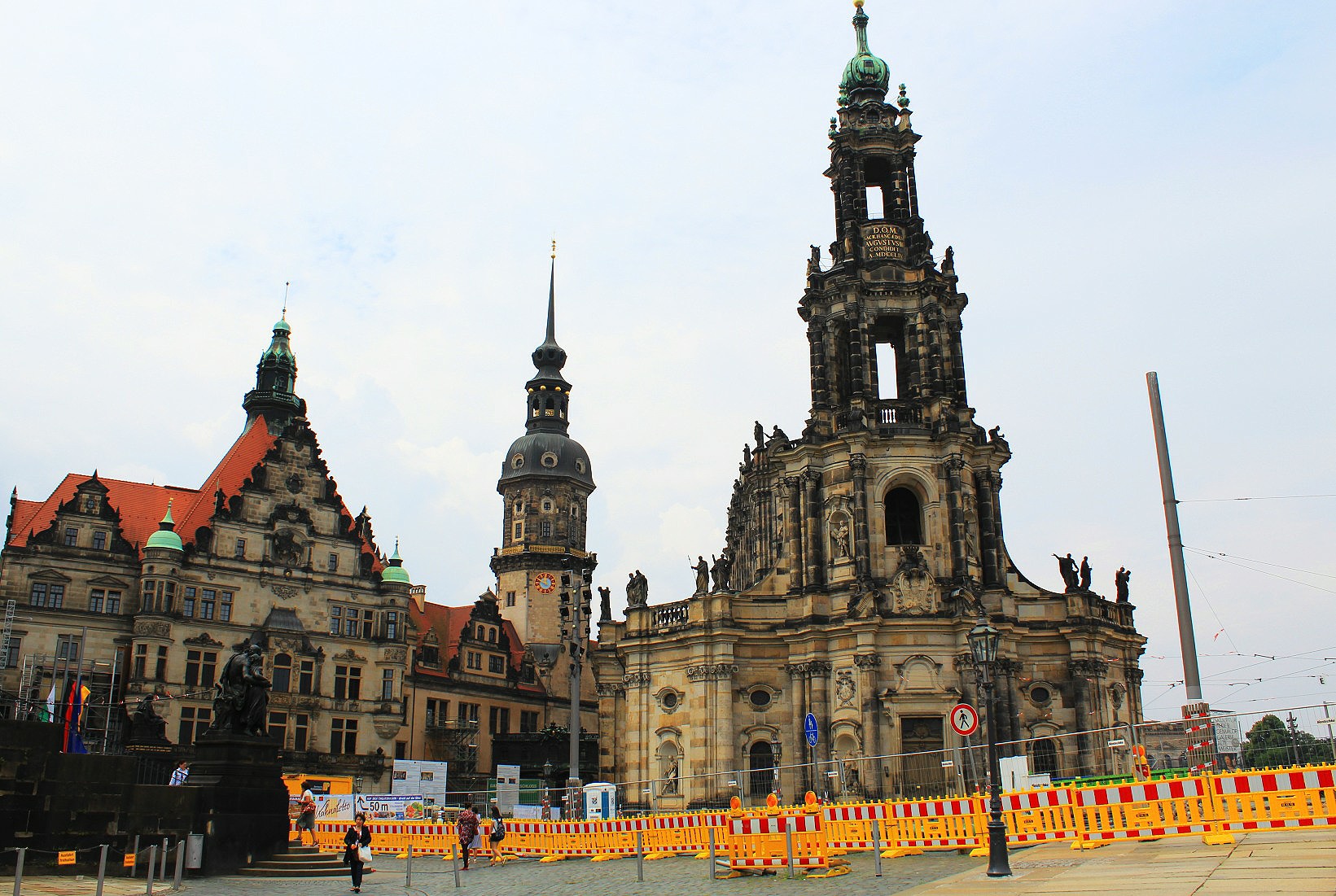 Tourists happily move their way around the dust and construction fences, whilst being shown images of how the square looked in 1945. The slogans on the scaffolding proclaimed, “Our beautiful Dresden”.