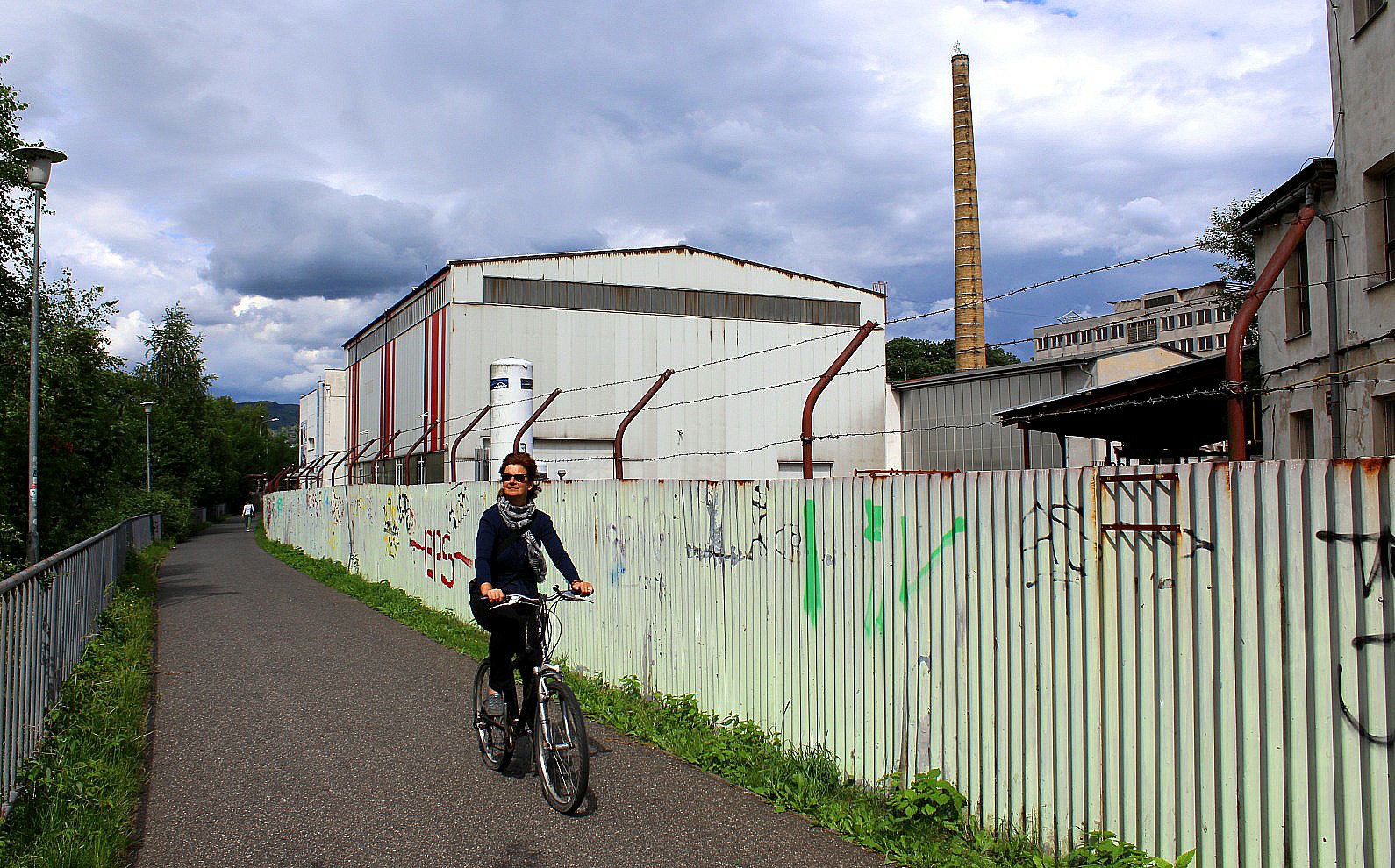 We cycled along a track following a bizarre metal pipe construction that crossed roads and bridges and occasionally belched out hot steam.