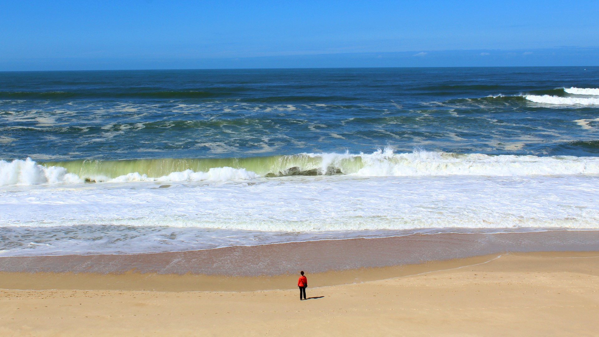 In a blessedly quiet afternoon of welcome sunshine and light wind we walked for hours on the flat sands whilst frothy, cold and turquoise blue waves washed over our feet.