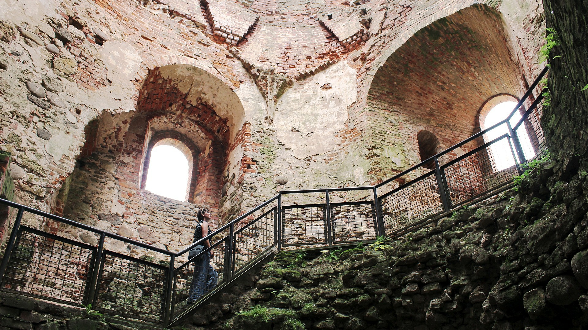 We clambered up inside the partially rebuilt Livonian tower for views across the town and countryside. After days of searing heat and high skies, the afternoon was overcast, drizzling and muggy.