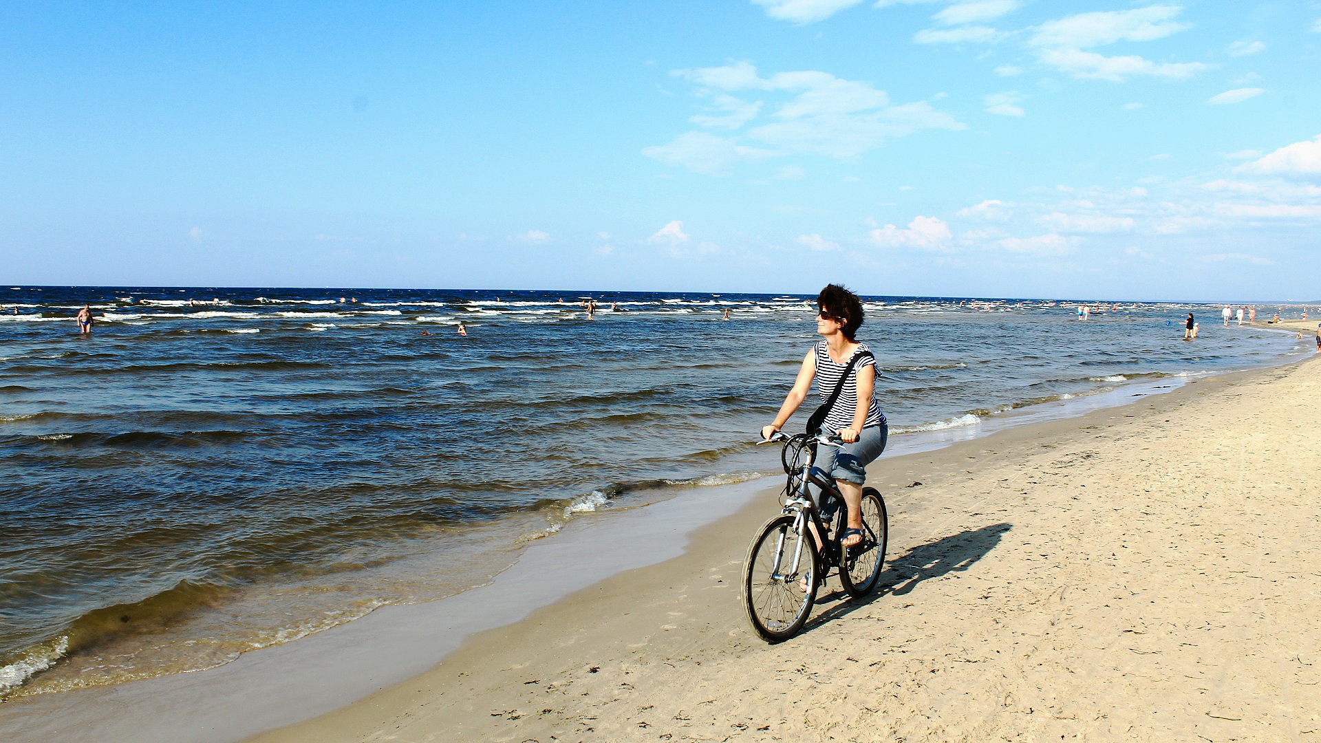 Latvia has a stretch of motorway around Riga and barely any dual carriage ways, but for some reason the authorities have seen it fit to lay out the road system in and around Jurmala as a two-lane highway. Add in the usual holiday makers’ mode of driving – normal rules don’t apply – and it was hair raising trying to stay in the saddle whilst narrowly being clipped by the wing mirrors of fast and flashy cars. Simon almost got taken out on a crossing by a young and very glamorous blonde speeding through a red light in a big black Porsche, with Russian plates (of course!)