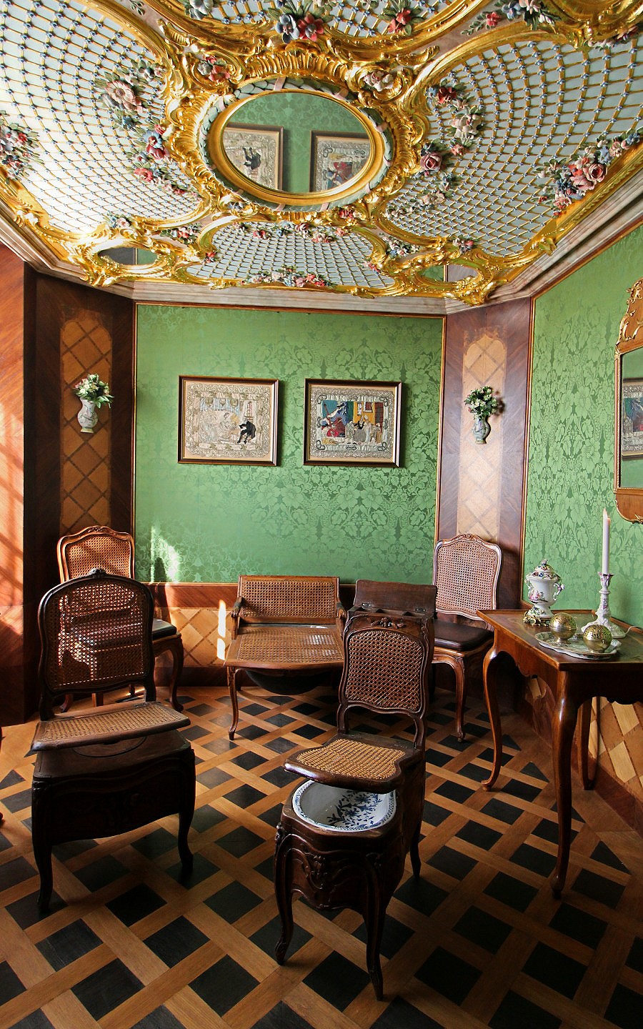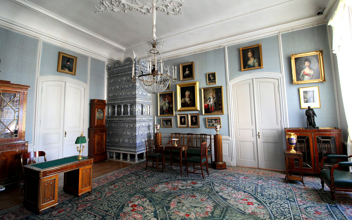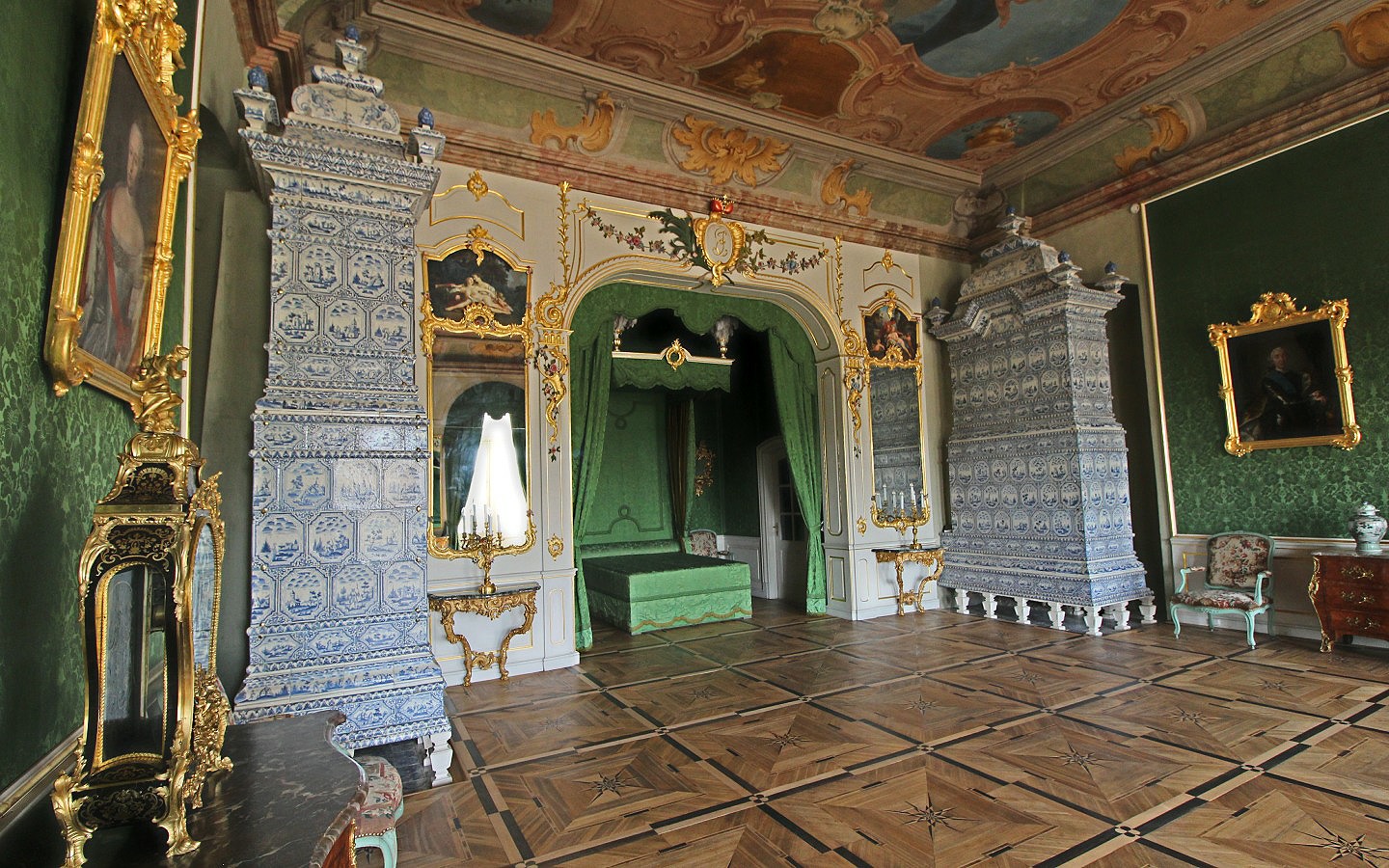 The main rooms were originally heated by an ingenious network of 80 porcelain stoves, of which six remain. Magnificent and striking, they sit grandly in the corners of rooms and are decorated with blue and white tiles, we thought from Delft but discovered to be from Gdansk and dating back to 1740.