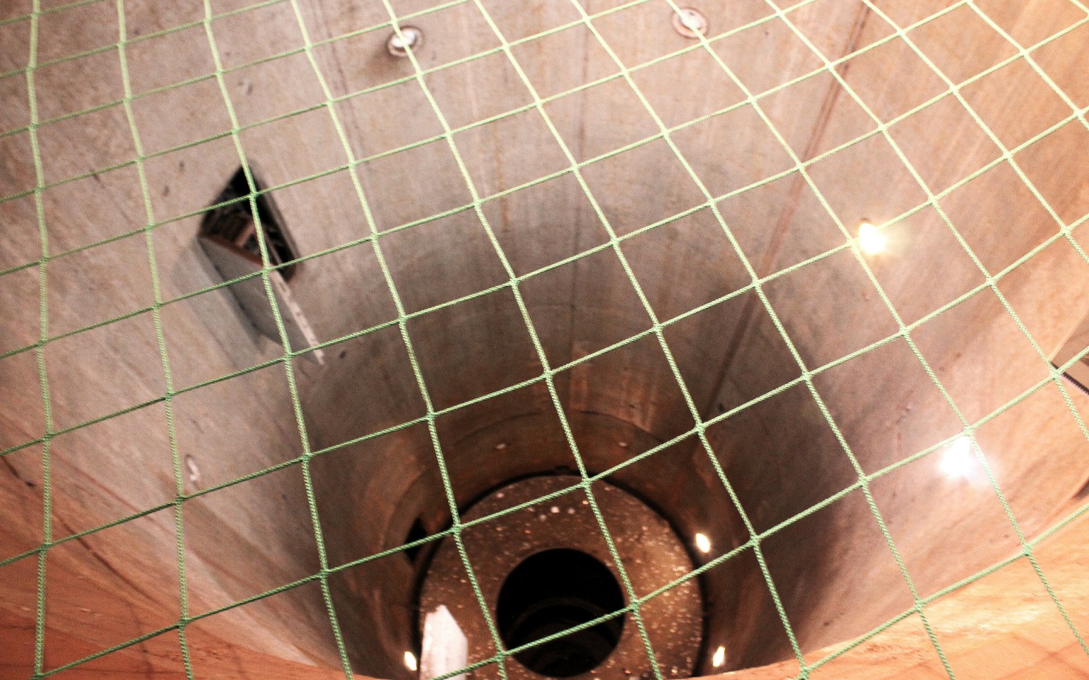 Our tour ended at the top of a missile silo, on a narrow metal platform that circled underneath the overhead opening of the weapon’s chamber.