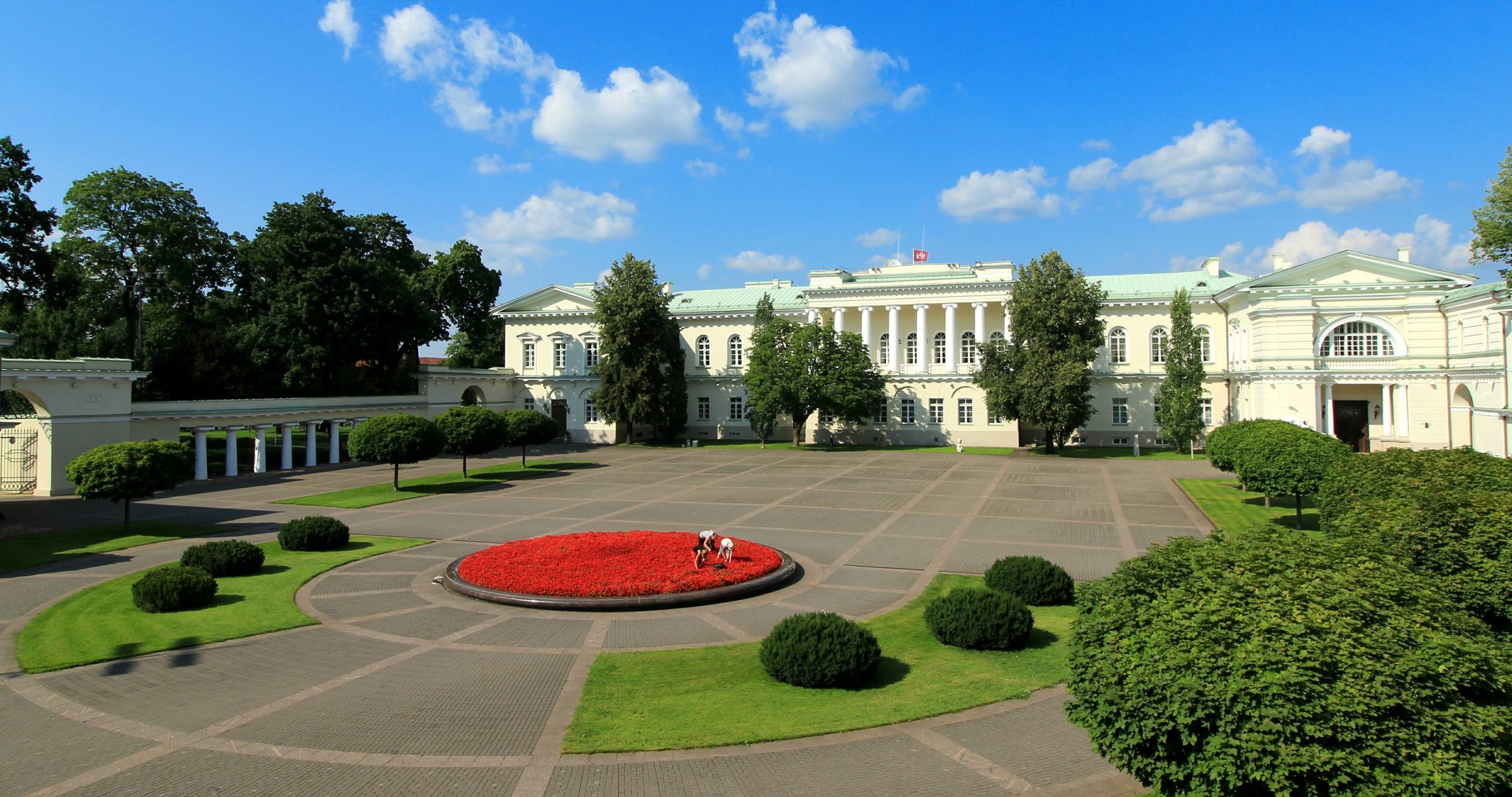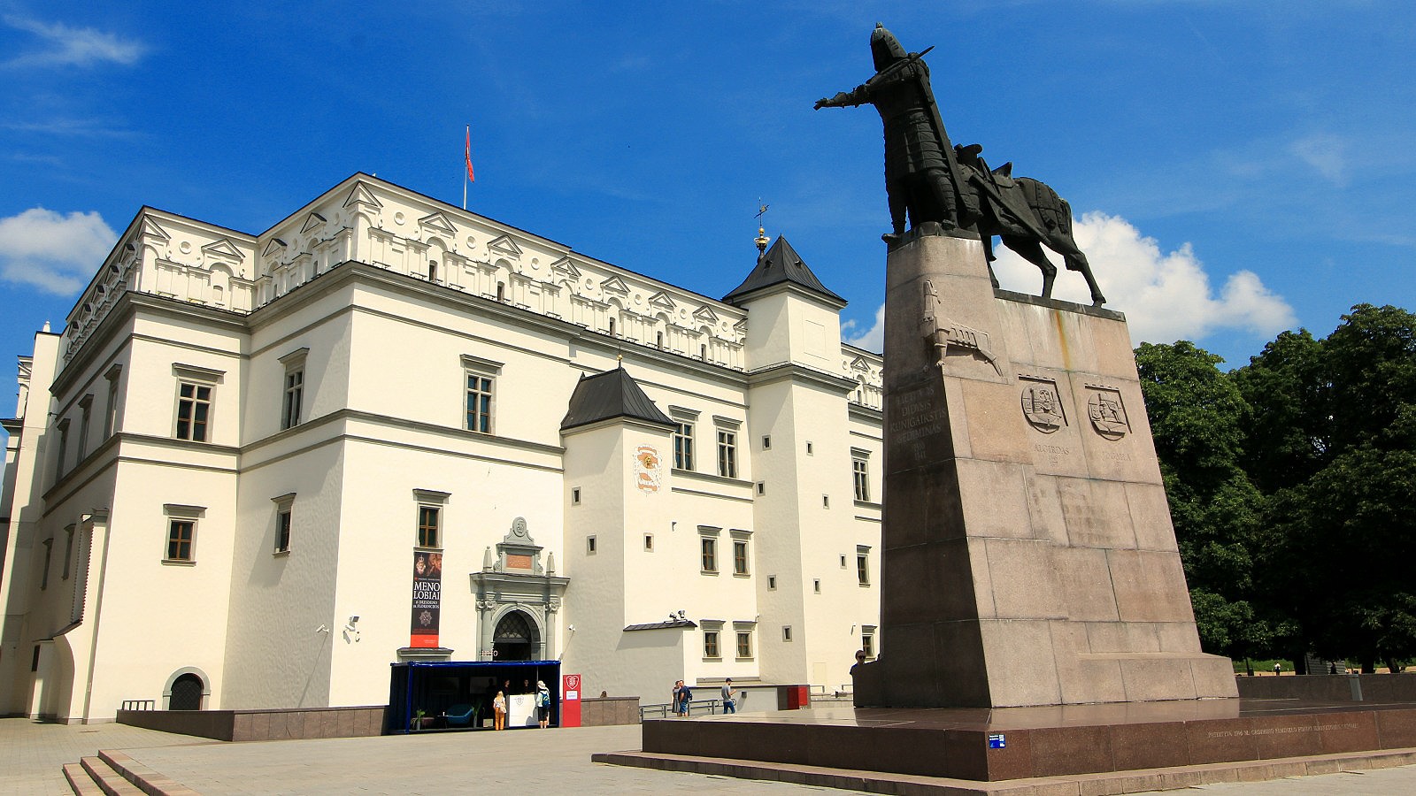 Behind the cathedral, the bright white complex of the Palace of the Grand Dukes of Lithuania was also destroyed and rebuilt over the centuries. What we see today is a rendering of its final grand manifestation, the baroque palace built in the 17th century.