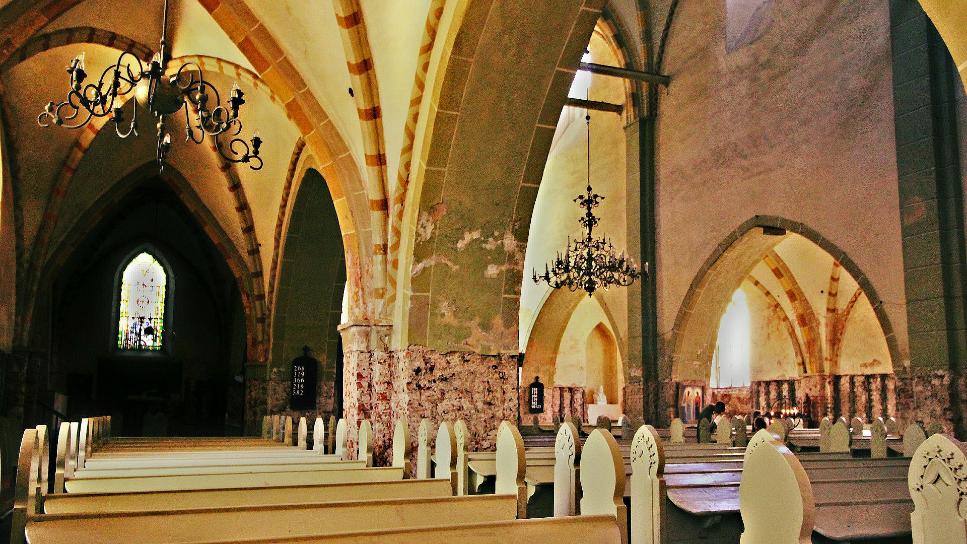 The putty coloured pews and simple decoration of the walls and ceiling, painted in lime wash and patterned with russet red pigments, had a cooling and peaceful effect in the hot, bright day.
