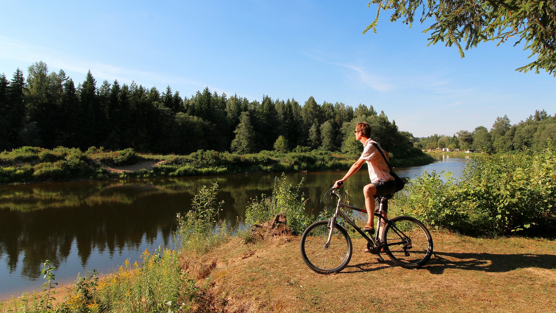 Staying alongside the Gauja at a busy campsite that was also a canoe hire business, we cycled up the steep couple of miles to town, bouncing along on the high pavements.