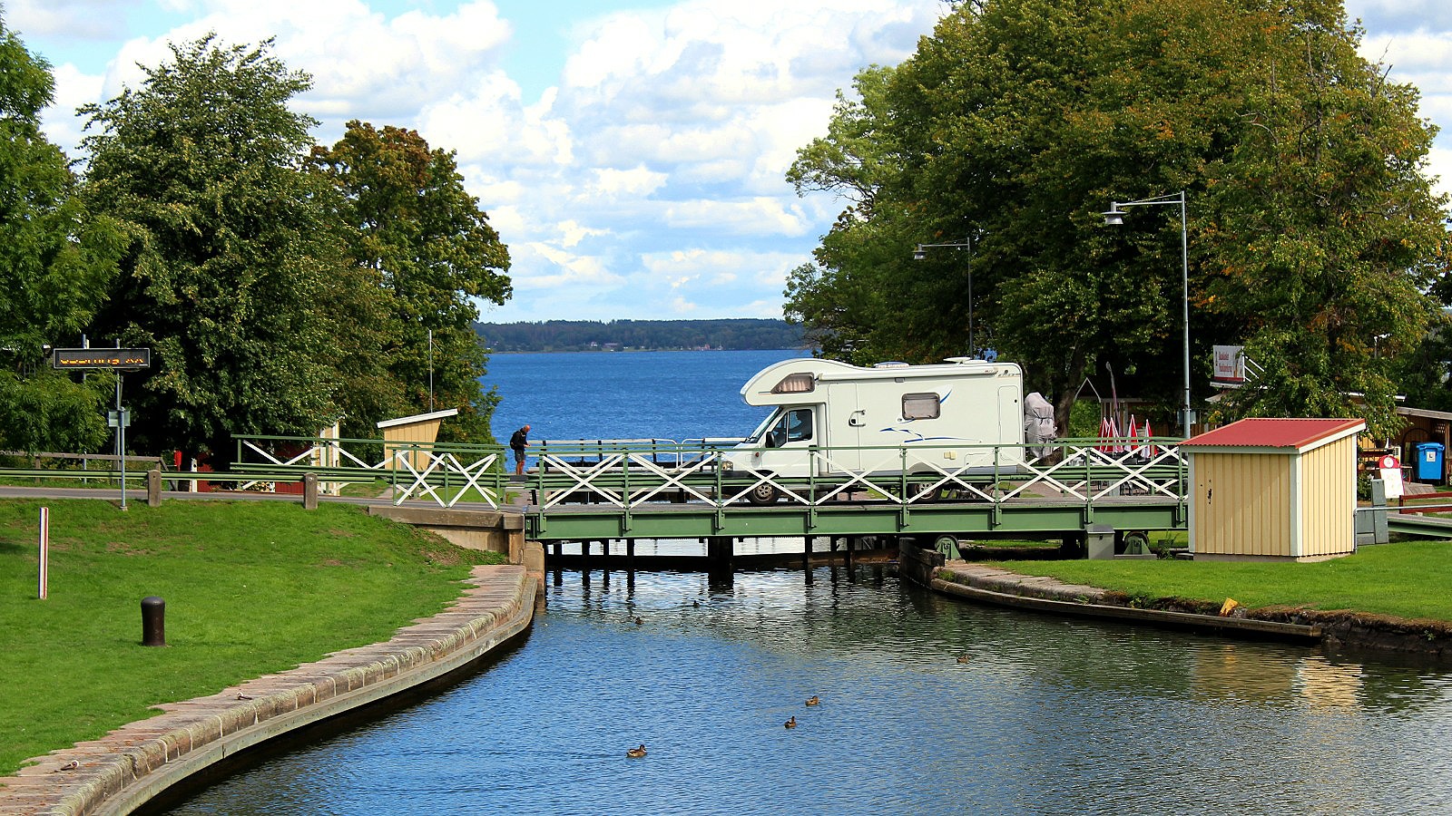 We got to drive Bertha across the lock at Borenschult which takes the canal into the blue waters of Lake Boren. From there we followed the course of the canal into Lake Vättern at Motala.