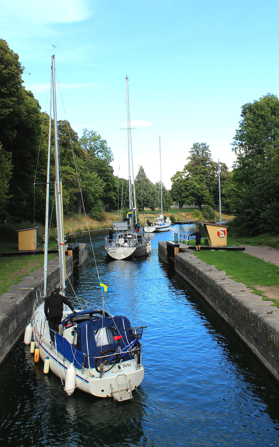 Requiring 58 locks and 50 bridges the canal passes through five lakes on its way from the Baltic Sea in the East to Lake Vänern in Western Sweden. From Lake Vanern the waterways are navigable to the North Sea.