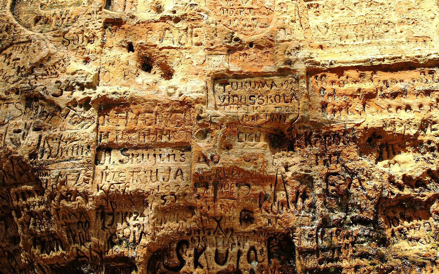 Aiming for the largest erosion cave in the Baltic, but by now with seriously low expectations, we peered into an abysmally small cave decorated with the usual graffiti and initials. Surely this wasn’t it?