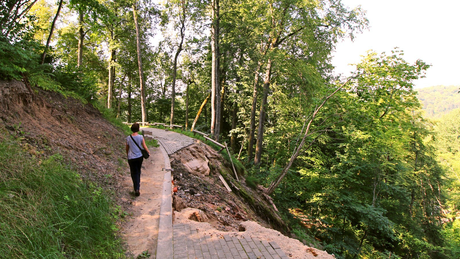 The group charged back to their coach, and we followed. The guide book advised us to ‘head up to Turaida Castle’ and an information board suggested we follow the road, which was steep and busy with coaches and hire cars being driven too fast.