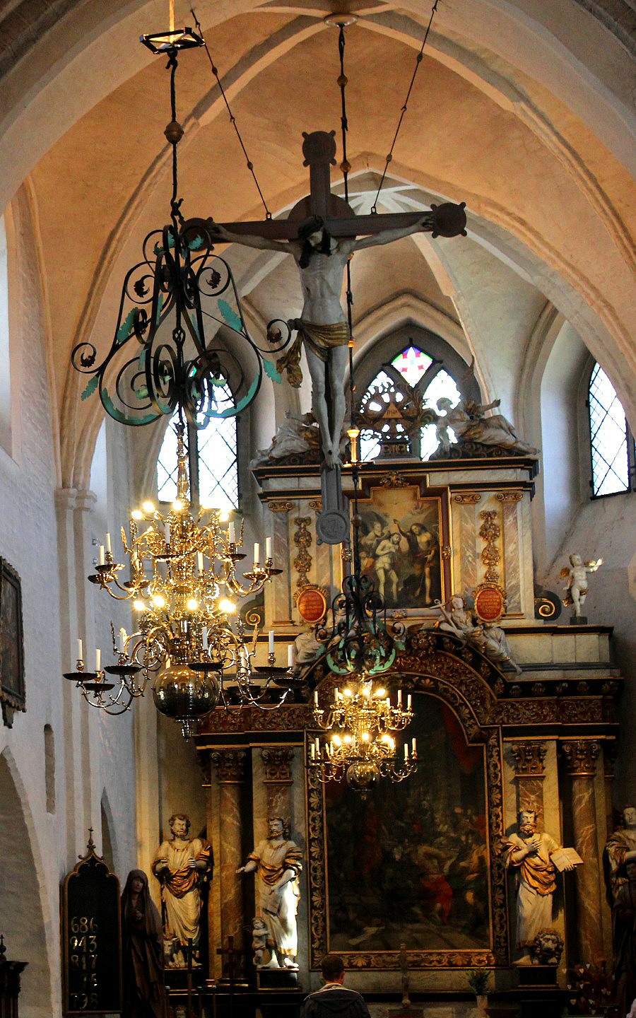 The church expanded over the centuries keeping an oak-carved altarpiece from the 1400s and a striking goblet-shaped baptismal font from the 1600s. Its 59 meter high tower employs the only resident night watchman (and bugler) in Sweden.