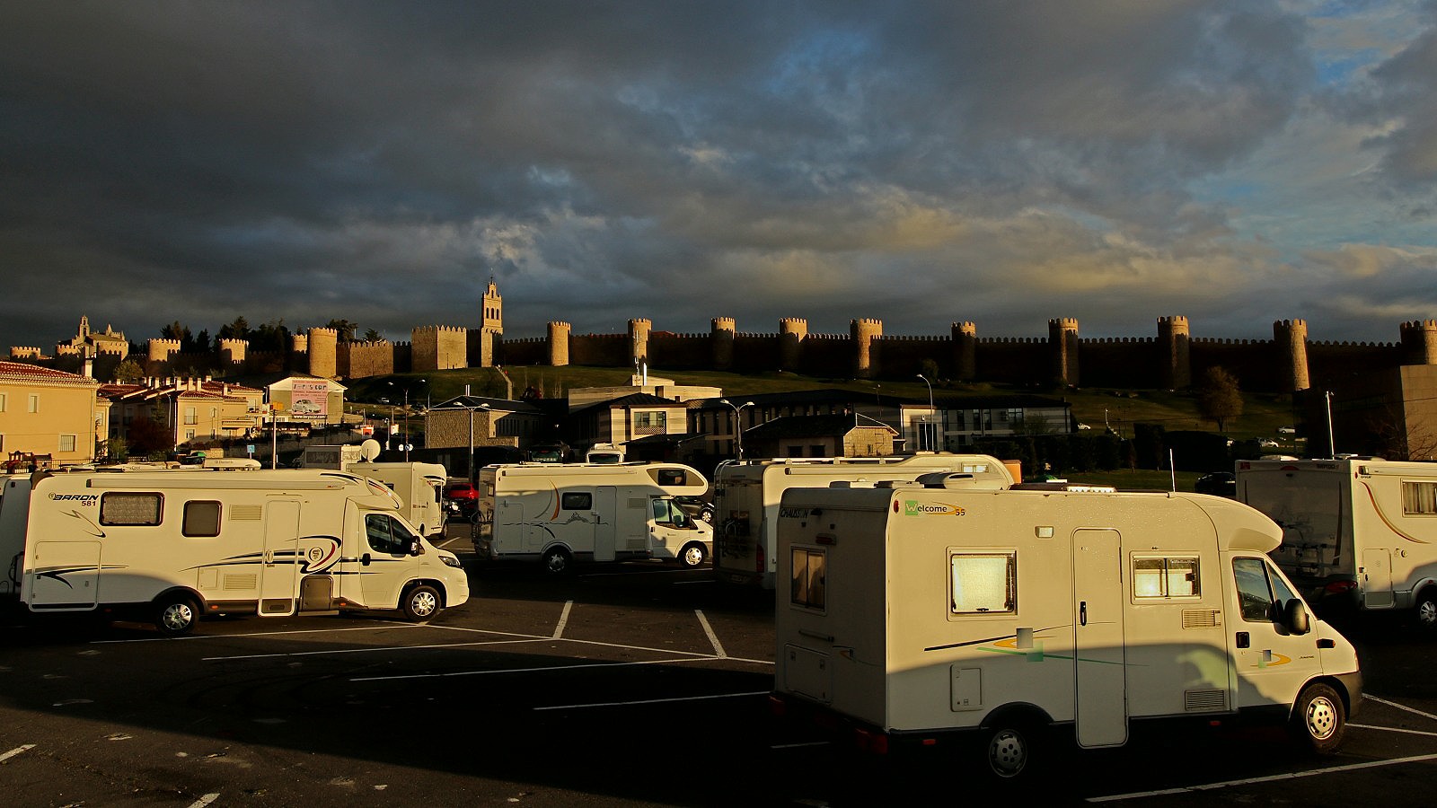 From the city’s motorhome aire below the walls, we had spectacular but worryingly windy views of Avila as the evening drew on.