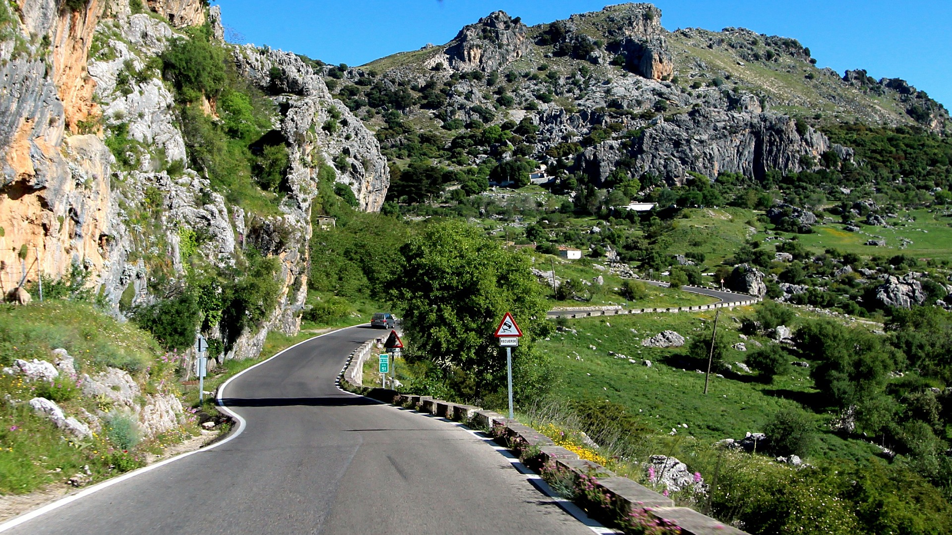 Above Grazalemar the road switched back in long steep curves up the mountain side. We had the good fortune to find ourselves following a little behind another motorhome which meant that oncoming traffic was alerted to our being there.