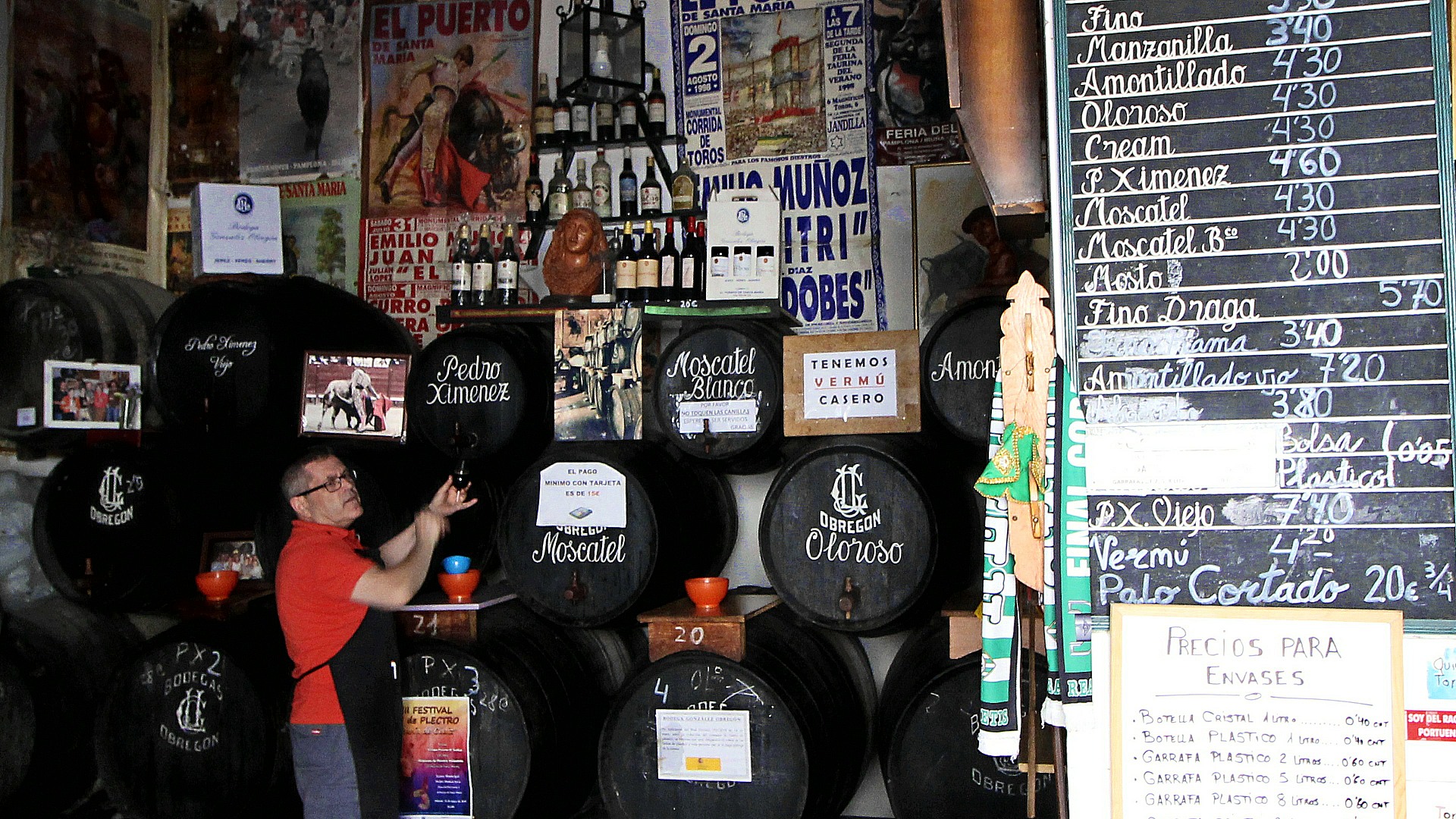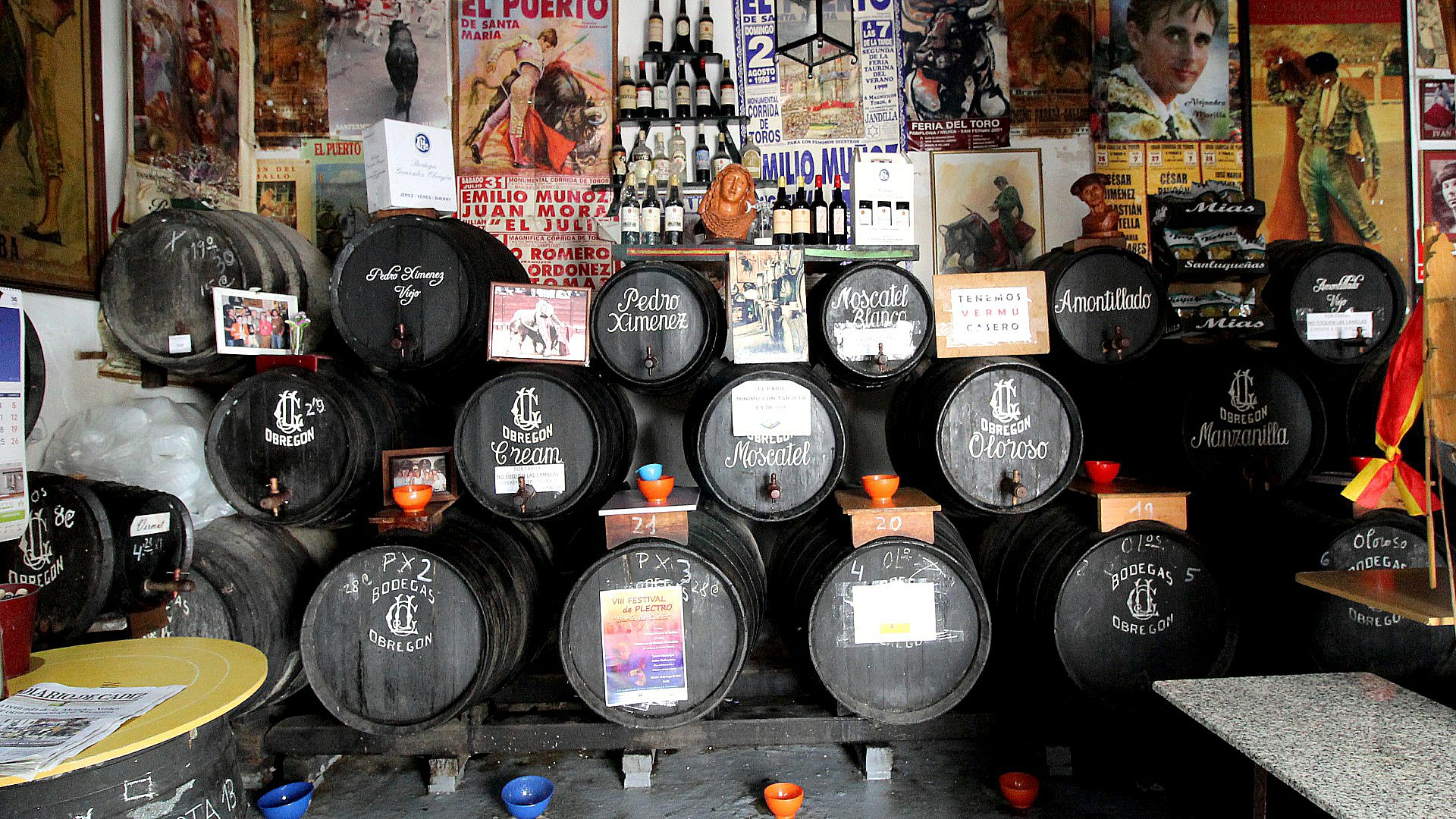 Amid the huge oak barrels of sherry and Gonzales’ collection of gigantic posters of 20th century matadors we three enjoyed una copa de Feria, una copa de Semana Santa and una copa de Navidad together.