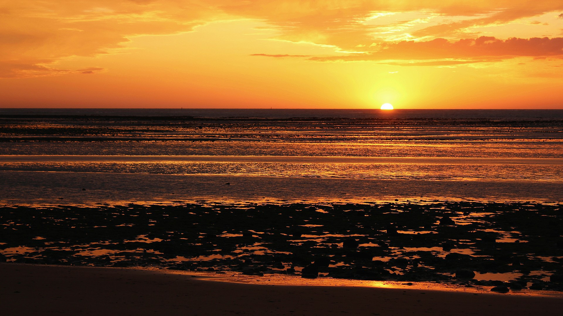 It was hard to tear ourselves away, but there was one last treat in store. As the sun set over the calm sea (so calm that two trawlers had beached on the sandbank and were lying at 45 degrees angles on the tide) we saw molten clouds of gold, amber and crimson mix and melt into each other.