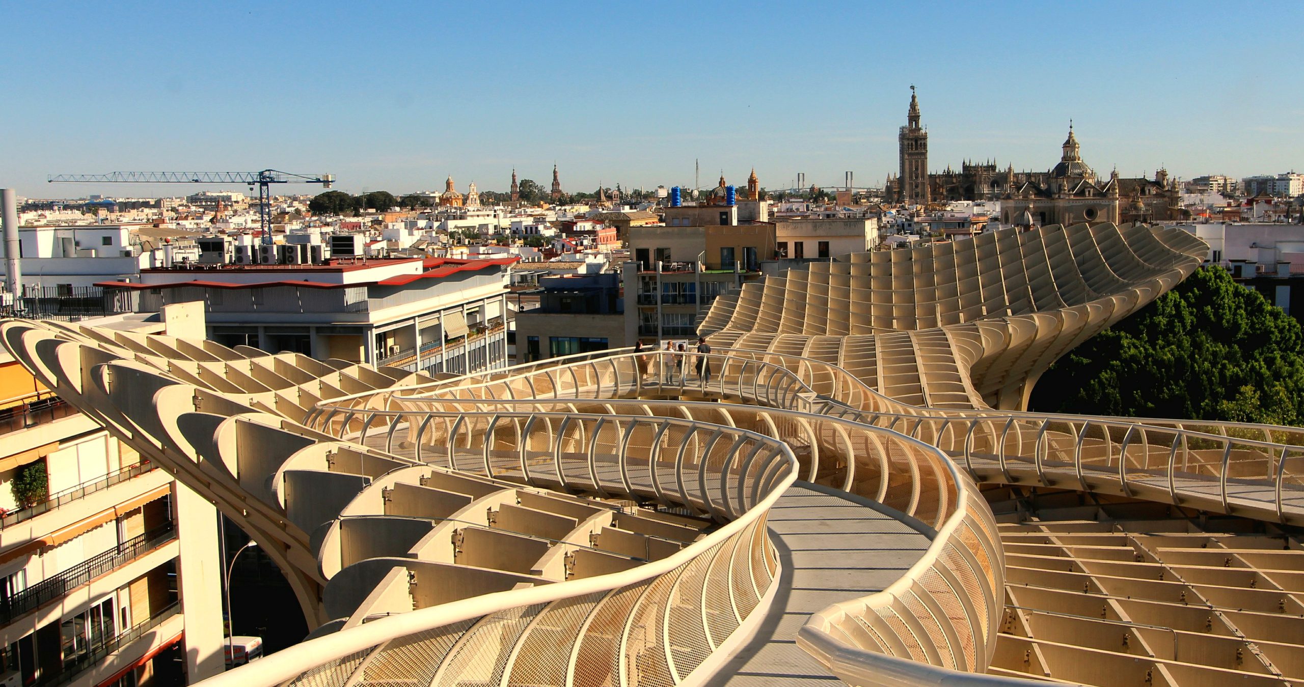Up above the Romans is the long and winding walkway of La Setas de Seville offering the strange experience of wandering on top of a large group of wooden ‘mushrooms’. It was still hot with a warm breeze as the sun began its slow evening descent. Josh loved the far-reaching views of the old and new cityscapes.