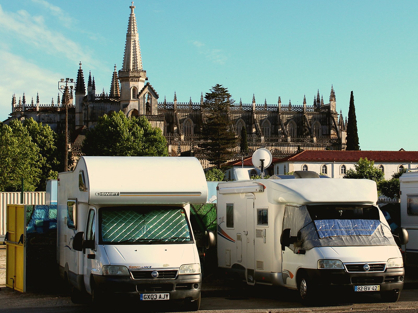 Packed in amongst a hundred or more motorhomes we chatted to a ‘long termer’ chap who stunned us by announcing that he’d been staying in the complex’s car park for two and half years. Apparently, someone else had already clocked up three years! Whilst we appreciated the friendliness and free drinking water, we couldn’t face a night in the never-ending traffic chaos of new arrivals, so moved on to spend the evening at Batalha.