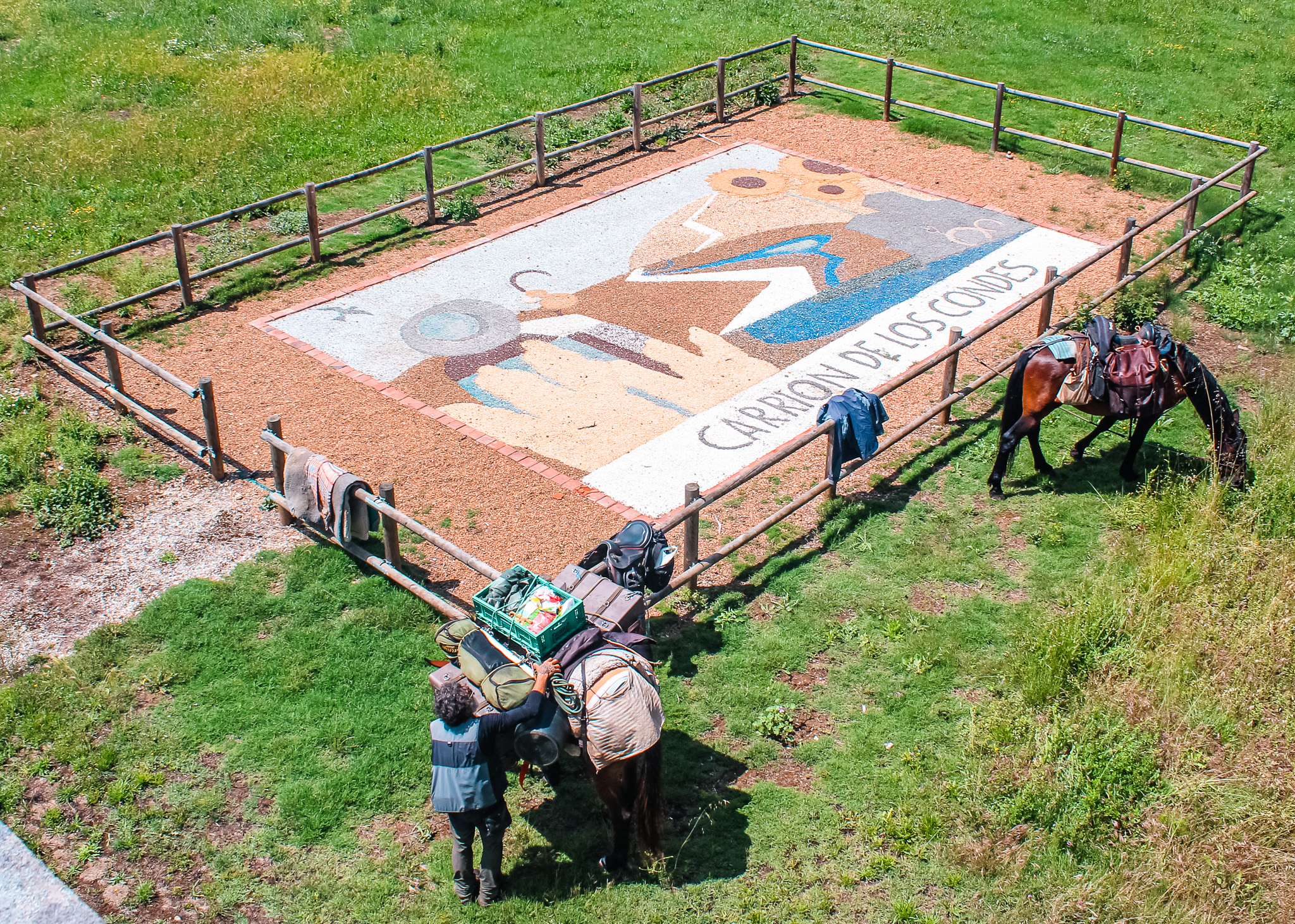 At Carrion of the Counts, we found a different type of peregrino, a horseman. He was travelling with two shiny chestnuts and a piebald pony.