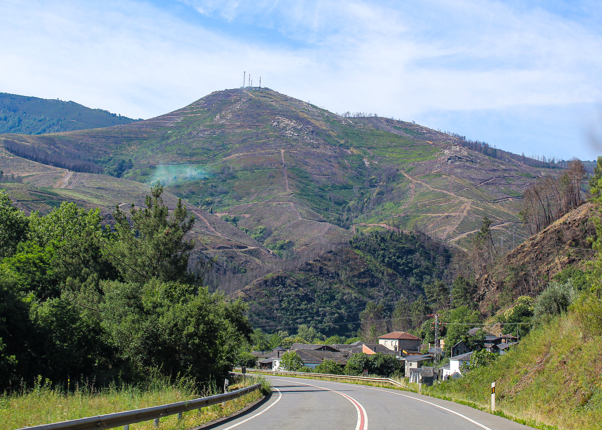 We passed cavernous stone quarries and joined a convoy of haulage trucks heaving heavy loads of stone and granite ever upwards. In the opposite lane long trailers of freshly felled forestry was being taken down the mountainside for logging.
