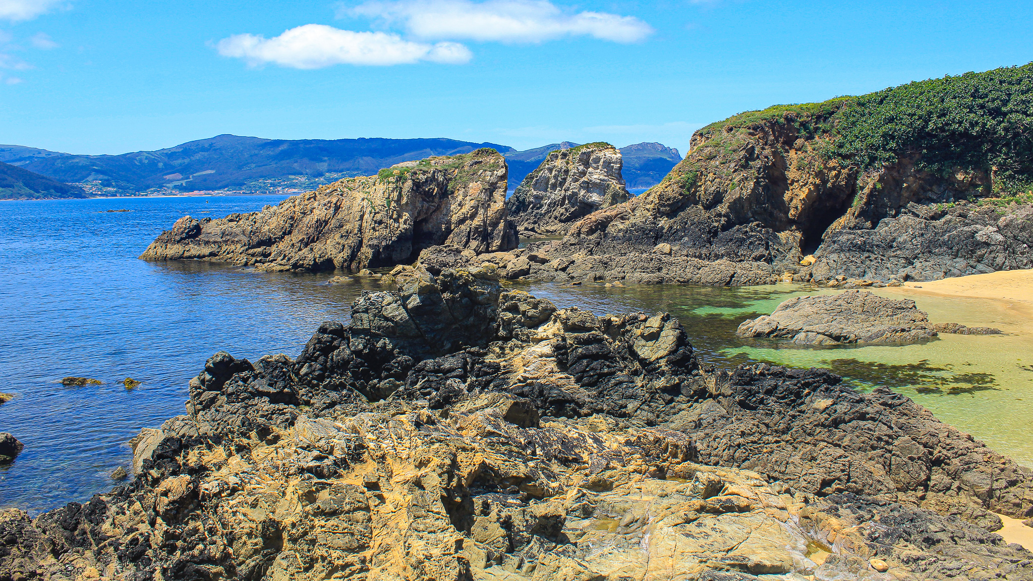 We left the sedate town, passing a strikingly gaudy, disused and out of place Discoteca and made the short journey to seaside parking at Porto de Espasante.