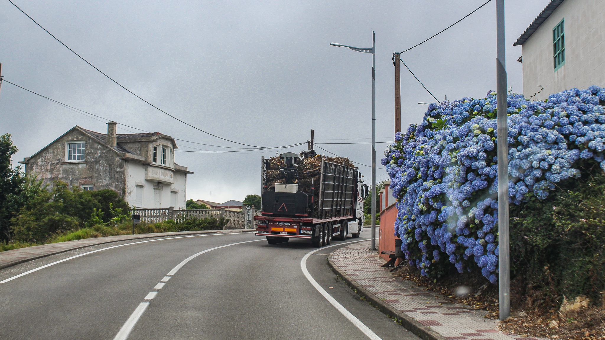 Logging lorries & hydrangeas