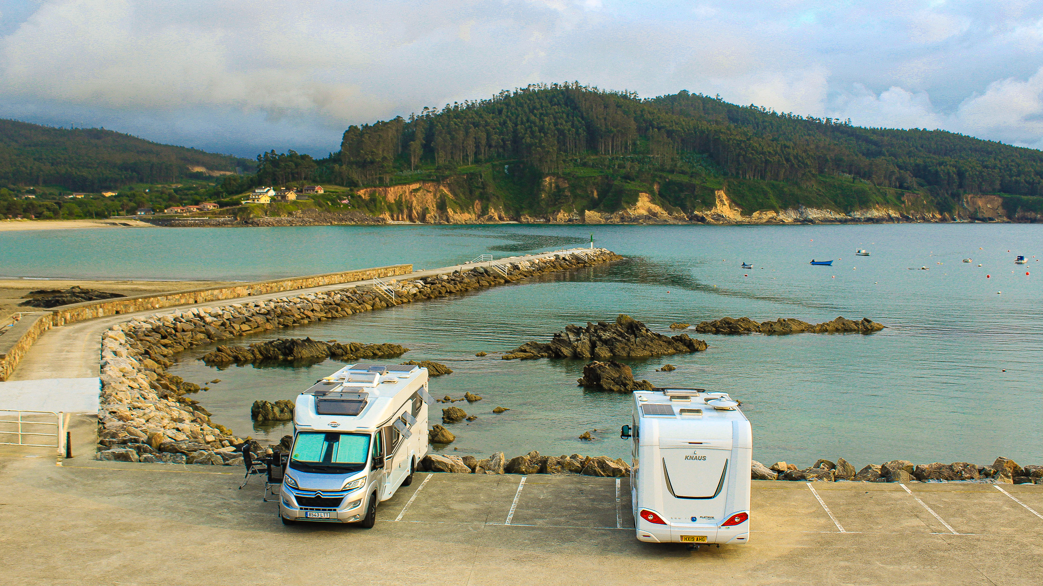 The road wound down and around the wide stretch of estuary at the Ria de Santa Marta de Ortigueira, a fishing and leisure port. We hoped to stay but on arriving at the parking for autocaravanas, it was confusingly signed as being closed and there was no opportunity of shade.