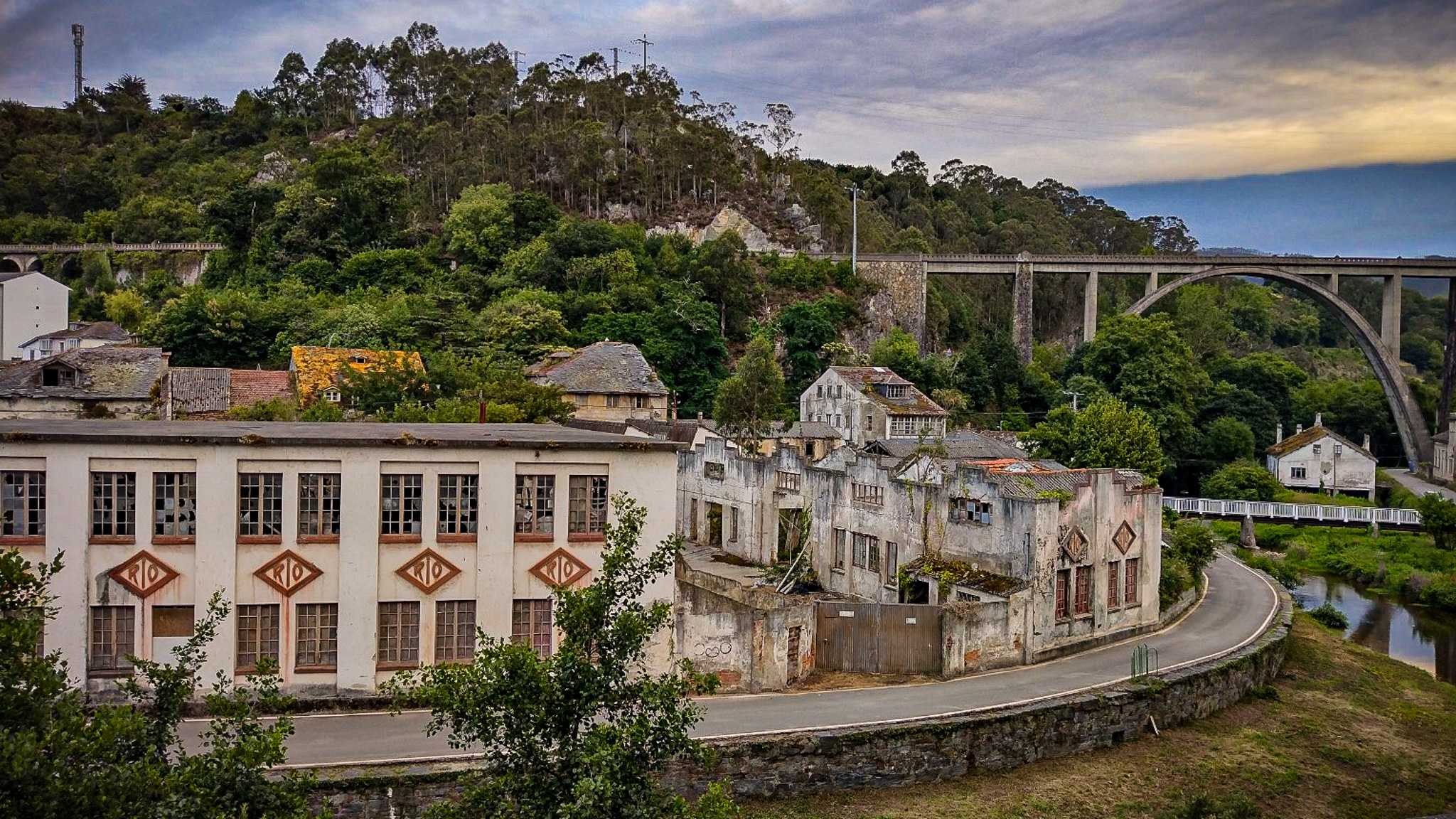 Towering over the town the impressively engineered viaduct carries the narrow-gauge Oviedo to Ferrol railway that the now familiar, two carriage yellow and white train, hooted its way through every four hours.