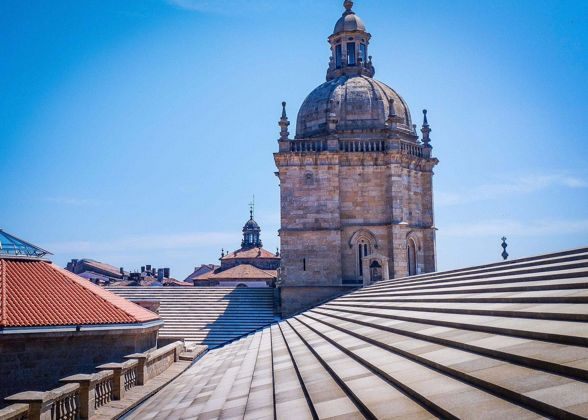 When Simon returned it was to show me stunning photographs of the terracotta rooves of the historical centre, with people as little pin pricks far below. The group had decided as a collective not to do the full tour of the balconies as the heat and light was so punishing, bouncing off the white stone.