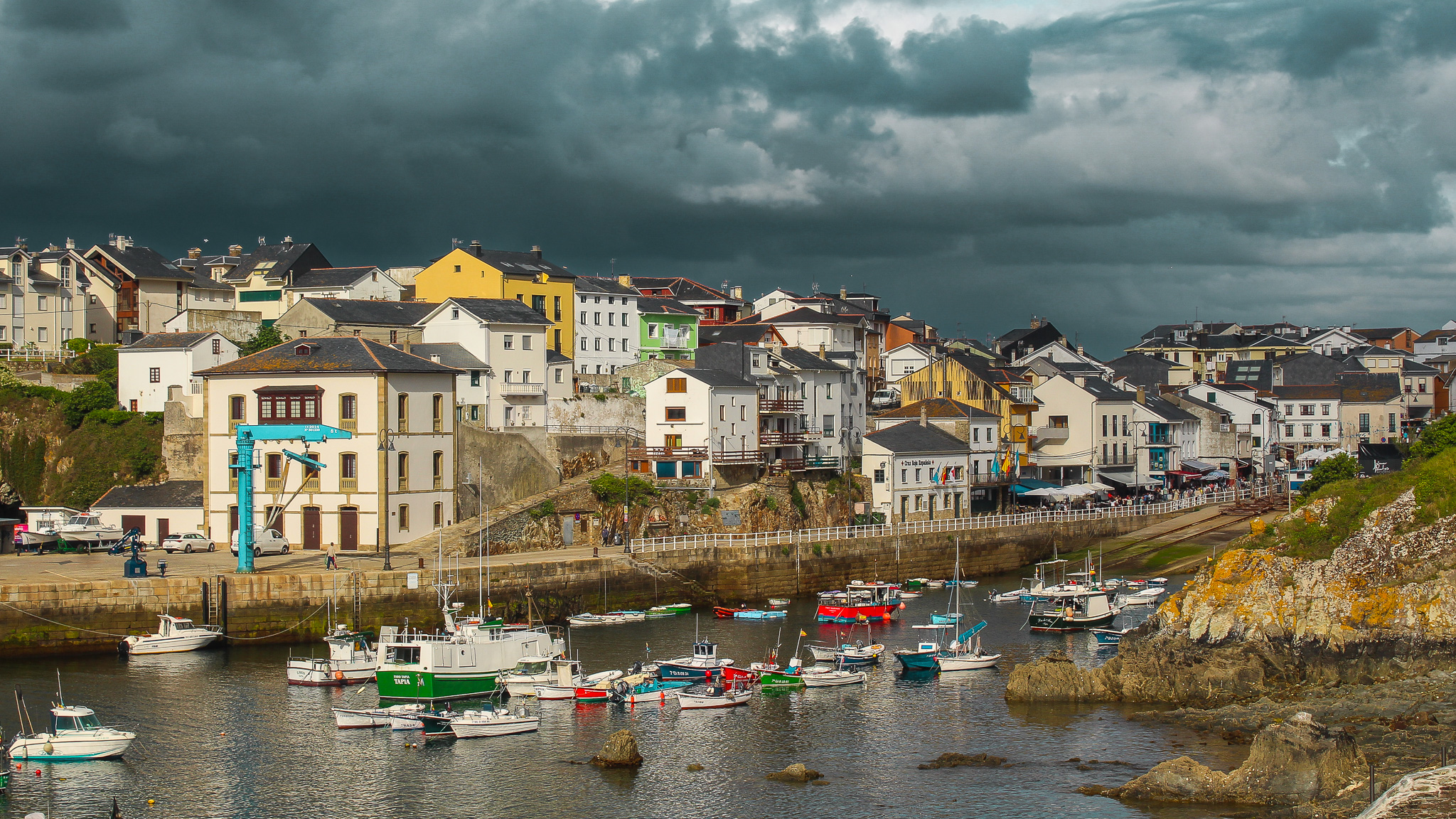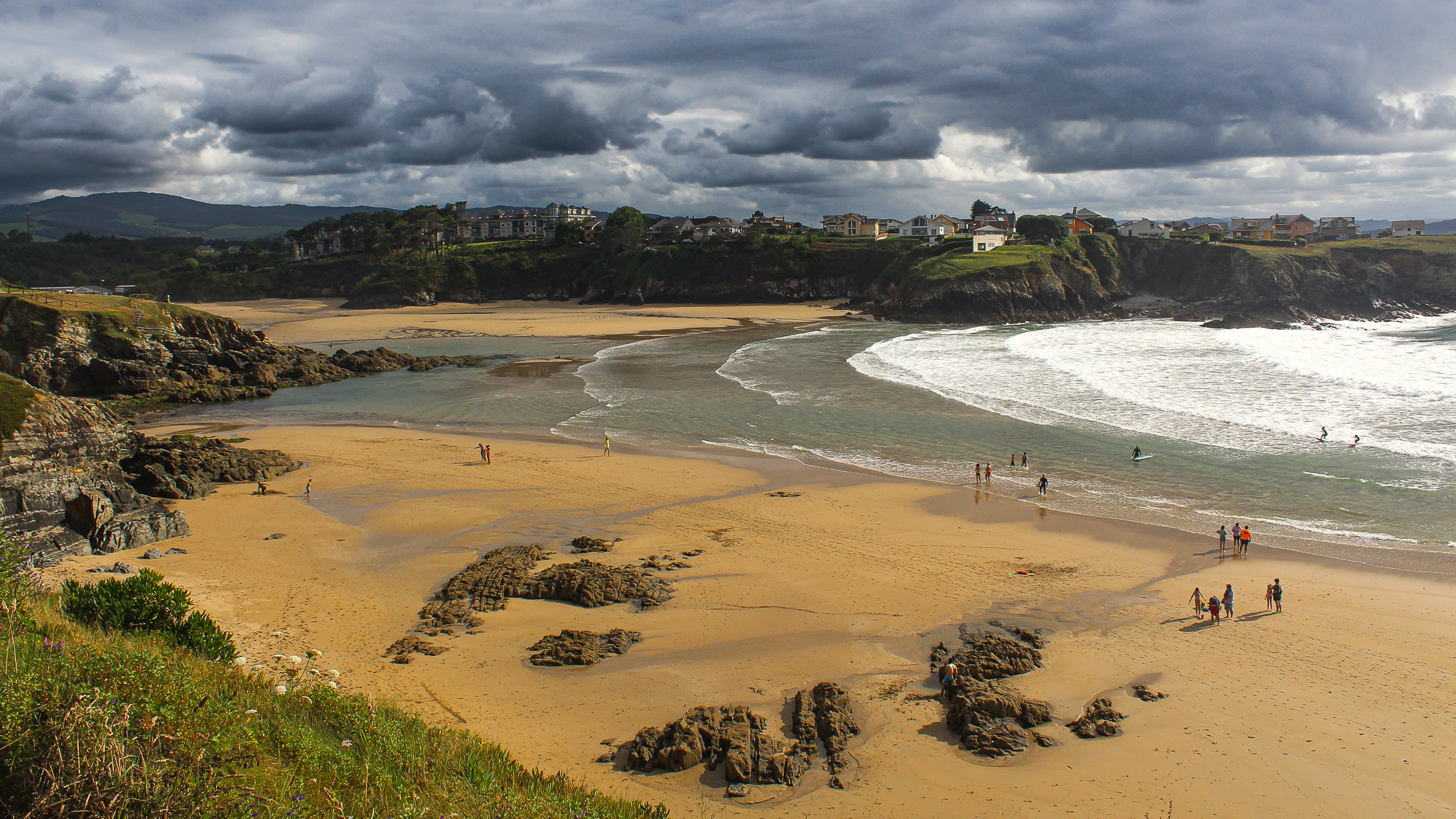 Tapia de Casariego is a pretty fishing village nestled in rocky coves, with a walled harbour, lighthouse and small marina. We clambered down to it from the campervan parking at the very top of the town, initially skirting the first of three sheltered and sandy coves busy with the after-work crowd setting up family games with children or swimming in the clear blue water.